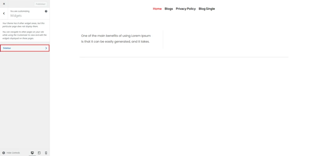 Widgets can be rearranged by dragging them into the desired order. If you want to remove a widget, simply click on it and select Remove. Using the live preview feature, you can see how your sidebar widgets appear on your site before finalizing any changes. Once satisfied with the layout and settings, click Publish to save your modifications.